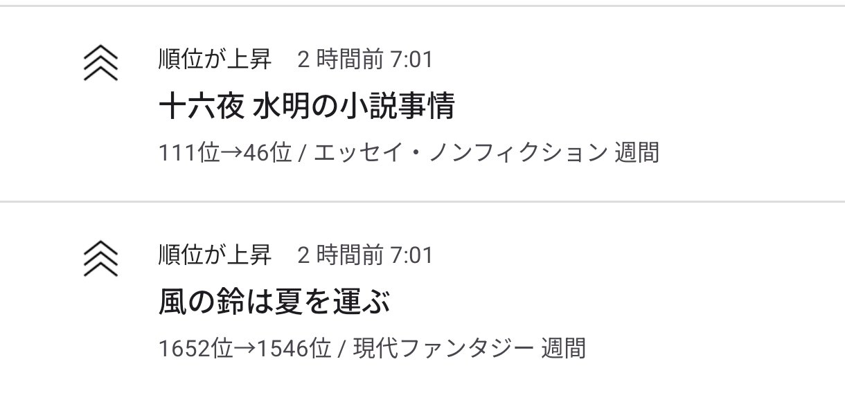 がエッセイ•ノンフィクション週間ランキングで46位に上昇。