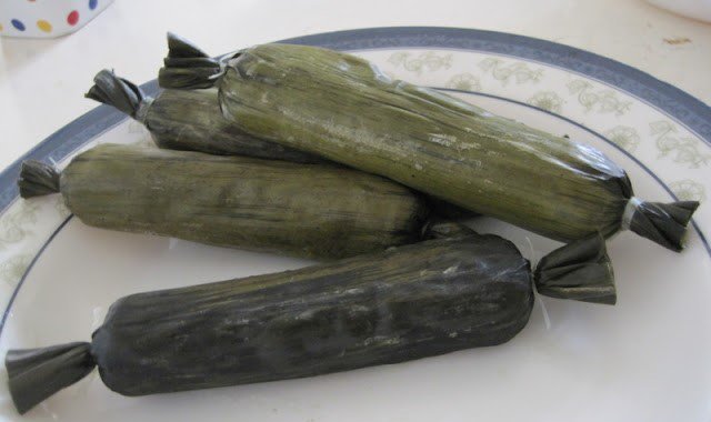「日本の笹の葉で包んで蒸したチマキのようなもの」だと思ってくれると想像がつくかと思います。
