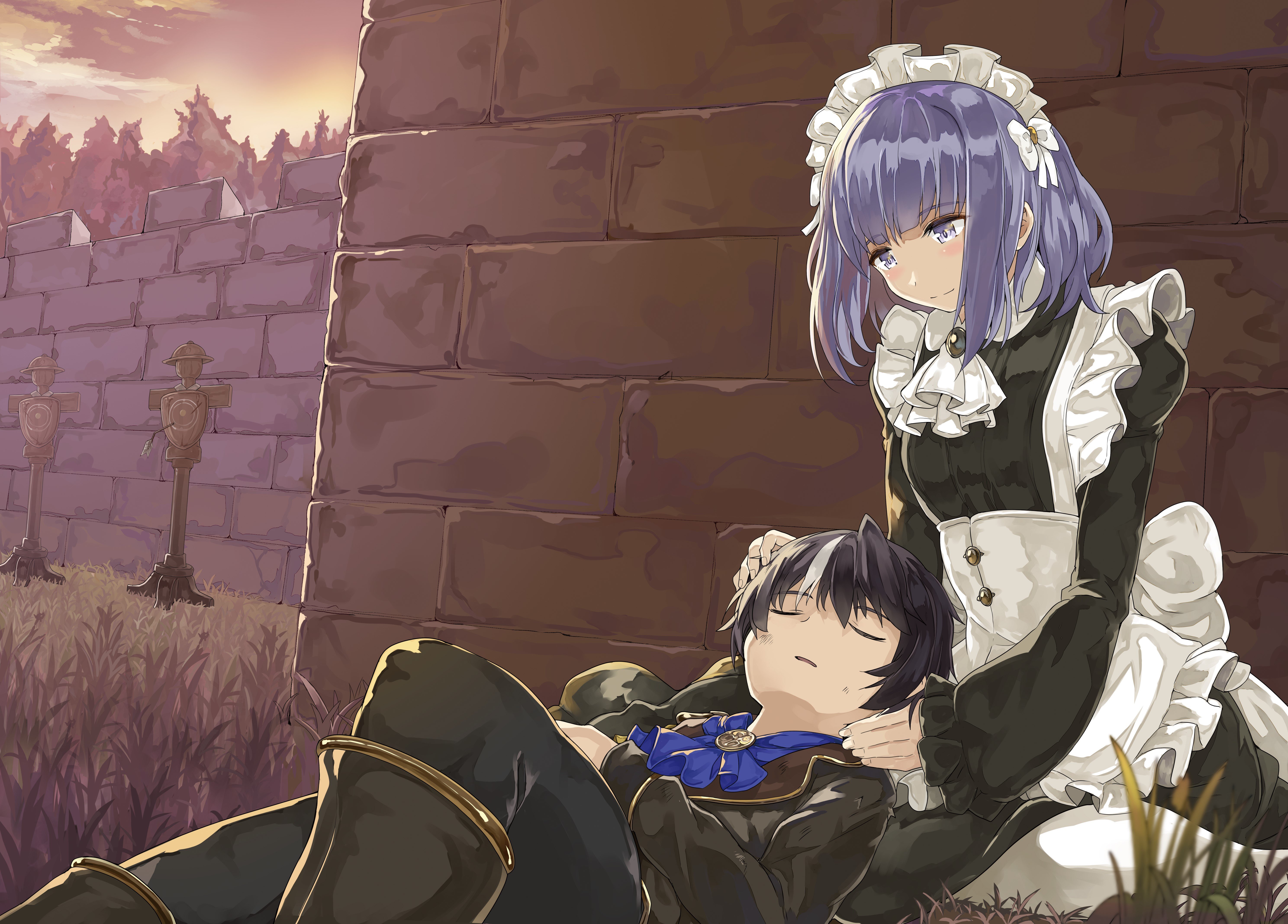 (練習中に吹っ飛んで)眠っているベルティアを、(可愛い可愛い脳内連呼して)優しく膝枕するシャーレです!
