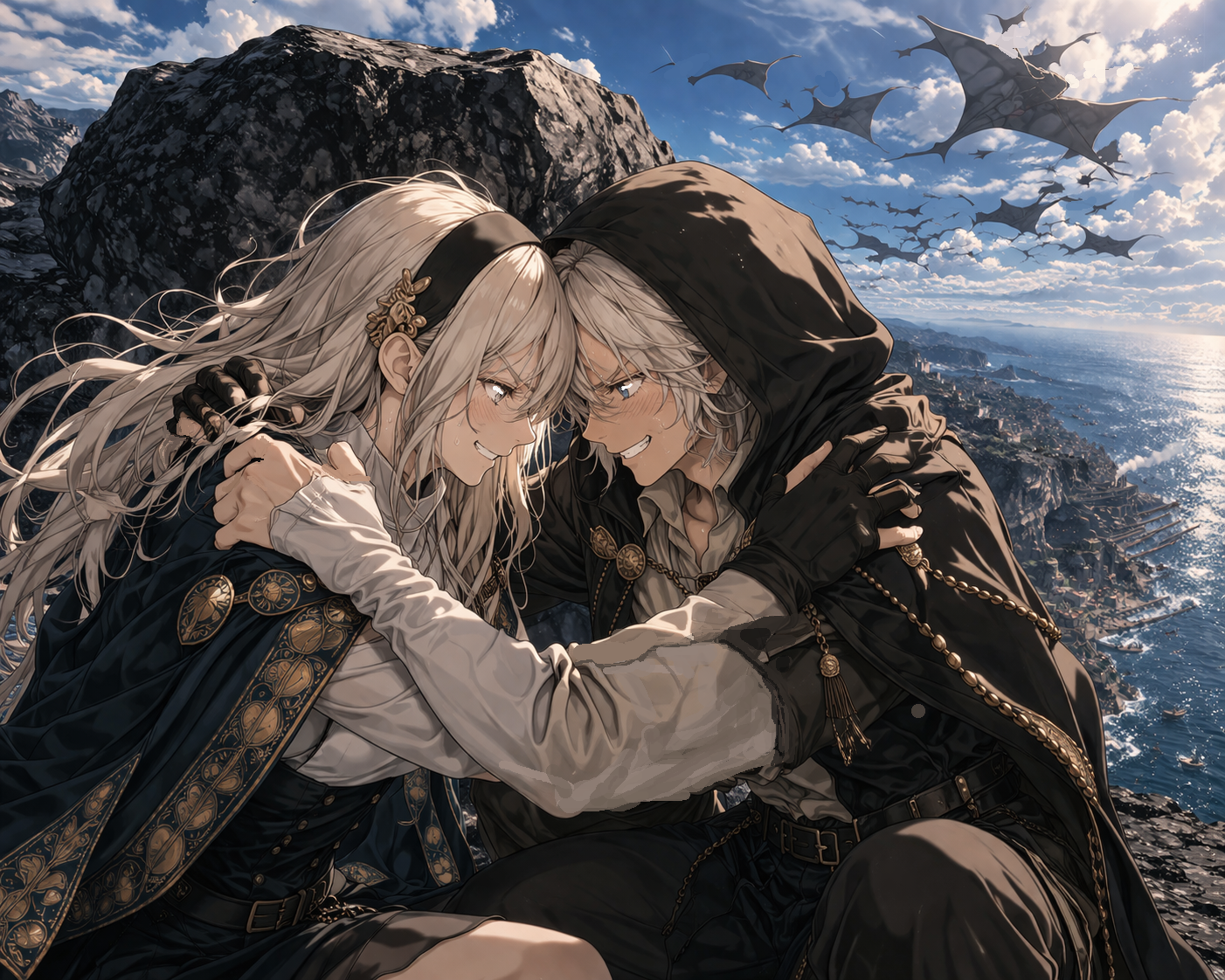 つづきの絵も3枚上がってきているのですが、同じような絵が続いてしまいますね。このシーンがいちばん二人を象徴すると思っています。
