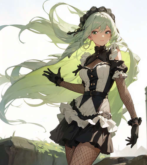 髪の毛とかメイド服の被覆面積増とかを、マウス手書きで「もっと、こう、増やして!」とかなり無理を言って(服は普通に戻しているのですが)増量してもらいました。