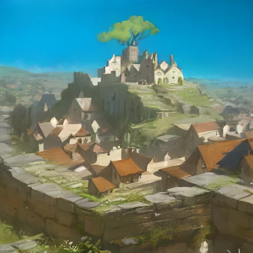 丘の上には井戸の木、ムアブ・トリチェラが水を汲み上げて集落を潤しています。白い邸宅が見えます。きっとルーガ・ミクマーフが、執筆していると思います。