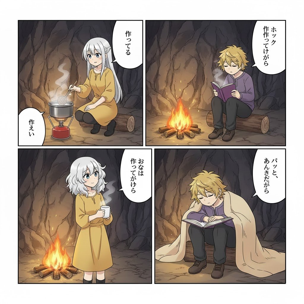 【画像】はAIが第二章の終わりごろのシーンをおなは作ってがゆら。してくれた四コマ漫画です。
