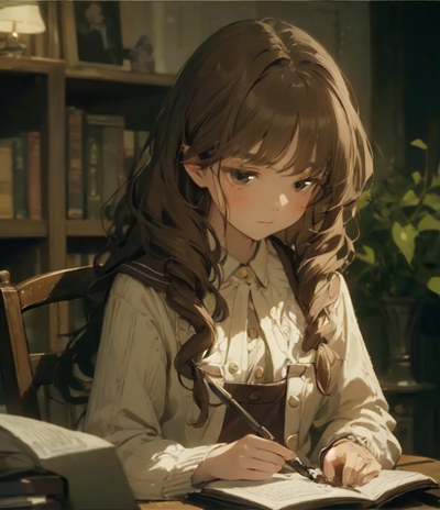 彼女は屋敷の中の書斎でなにかの書き物をしています。