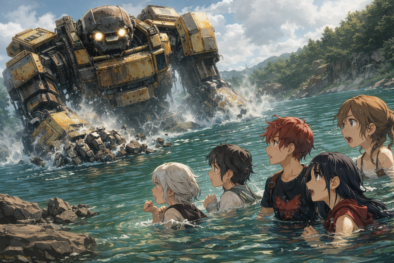 【画像・着水した五人】