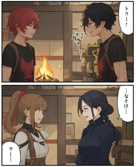 一コマ目の背景、右側にあるトキンカデラー(謎ロボ)が気になります。