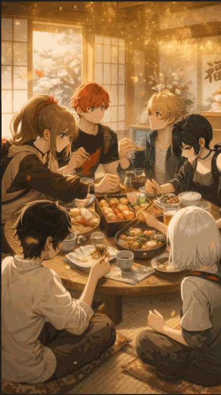 【movie】は 2026年の元日に公開した、六人のお正月の風景。
