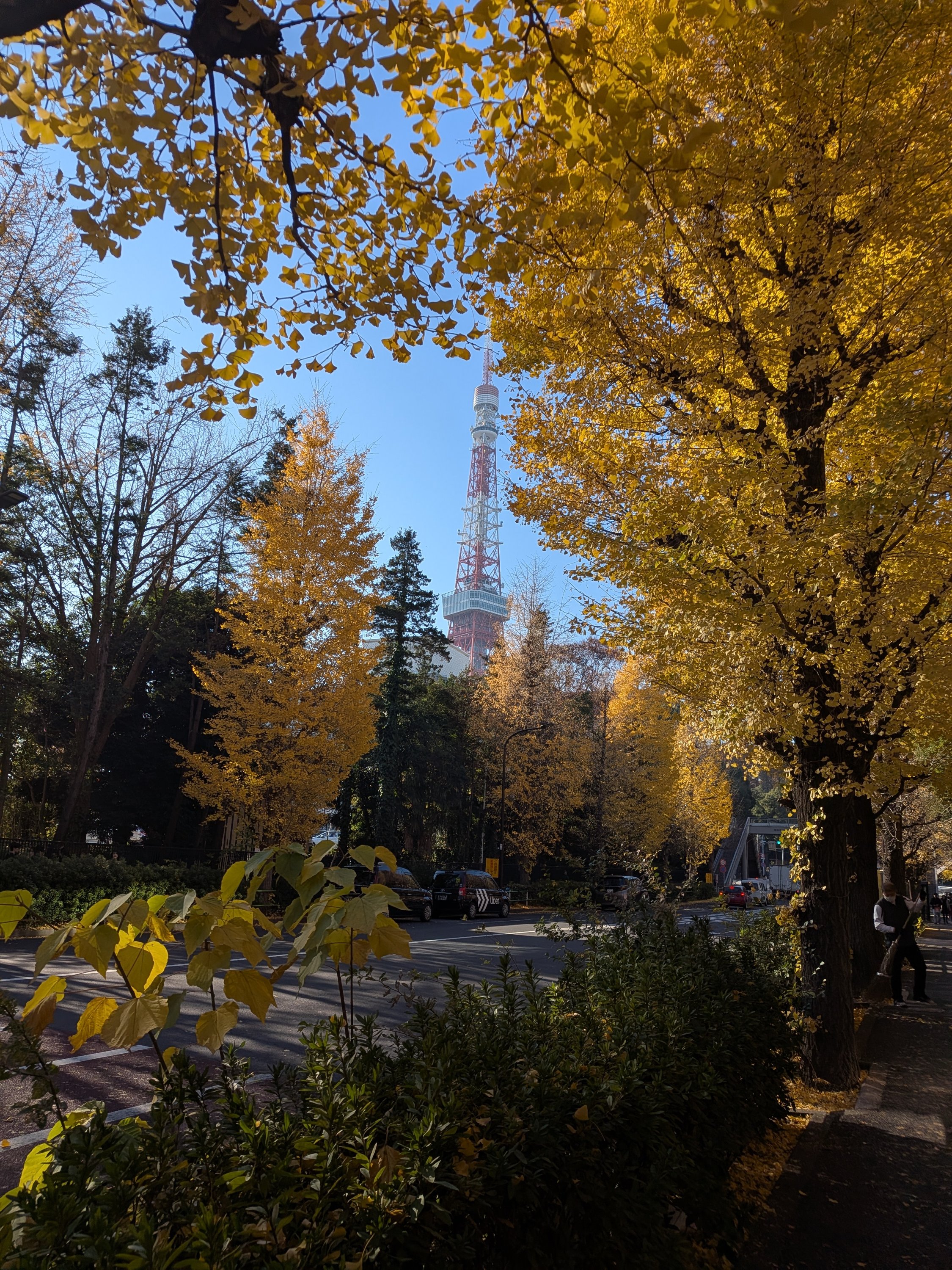イチョウの隙間から東京タワーが覗いています。