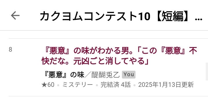 カクヨムコン10短編 エンタメ総合 週間8位!!