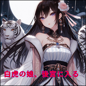 それまでは、魔法のiランドで数年投稿していましたが、今年3月末に、ここの一部になりました。私自身、ビビッております。だっていきなりメジャーですもん。で、以前、コンテスト用に投稿した「白虎の娘、後宮に入る」を全面的に書き直してアップする事にしました。下の画像(AIで作成)が表紙だったんですけどね。