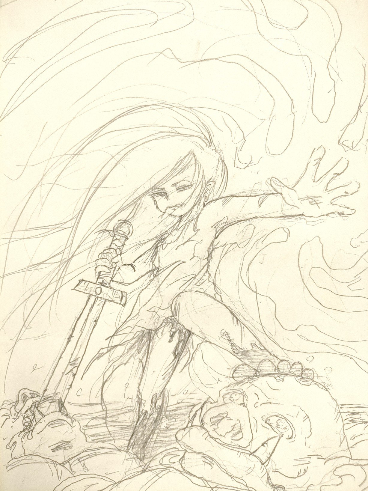 正直なところ、構図はあまり考えていなくて、頭に浮かんだ映像をそのまま紙に移す作業と言った感じです。