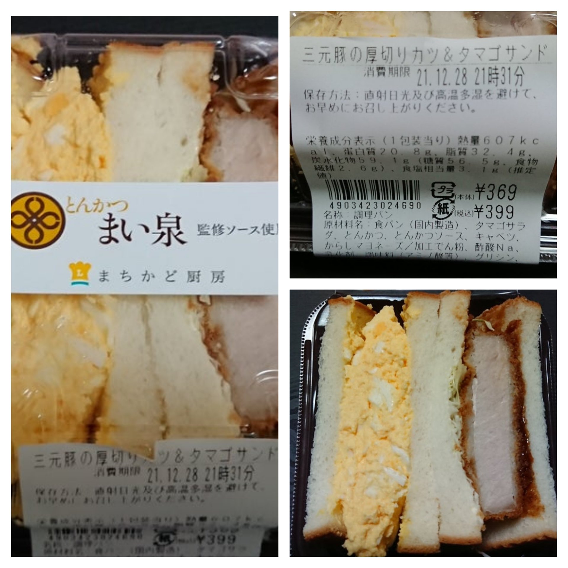 備 考:以前は卵だけの商品があったが、現在はまい泉のソースを使った、かつサンドが一緒に入っていて、これも旨い かつサンドも併せると85点あげても良い リピートあり(写真は過去のものですが、価格は現在のものです)