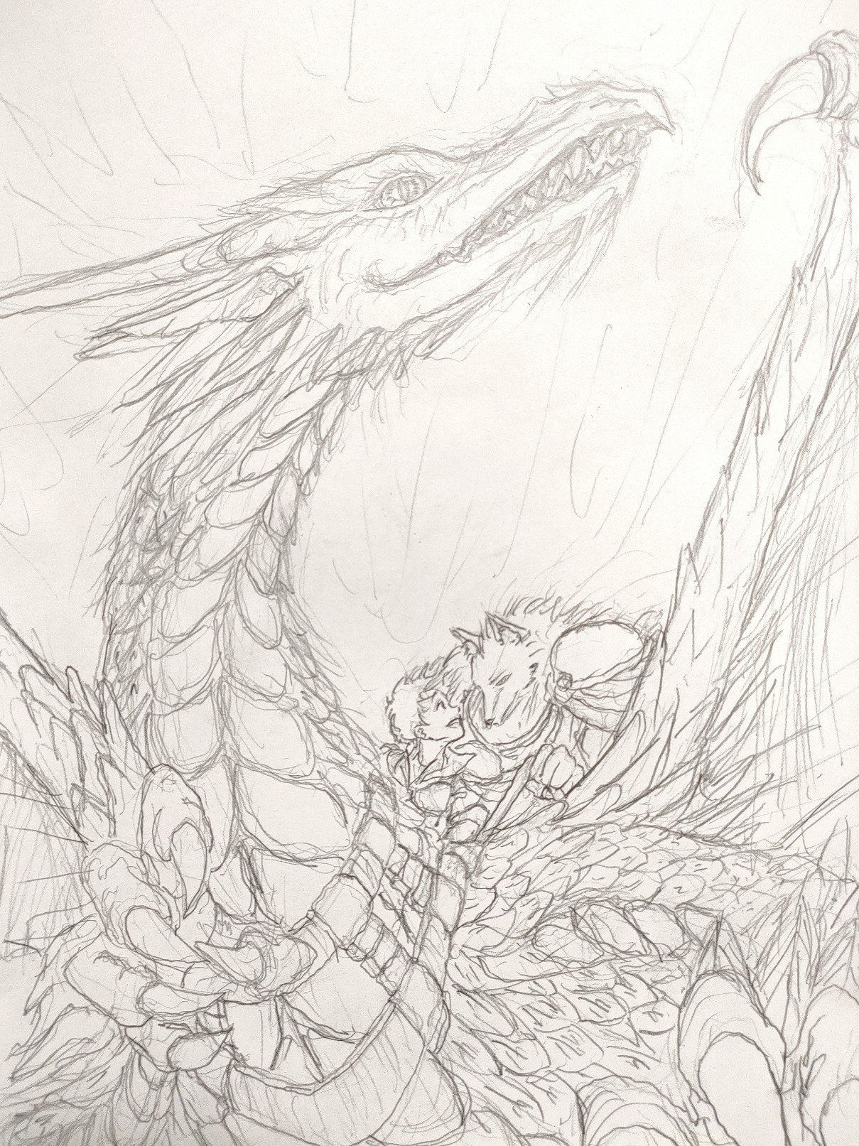 背中に人が乗ってる状態、つまり、ルーくんを描くと必然的にピンクちゃんもこうなってしまう。バランスですね。