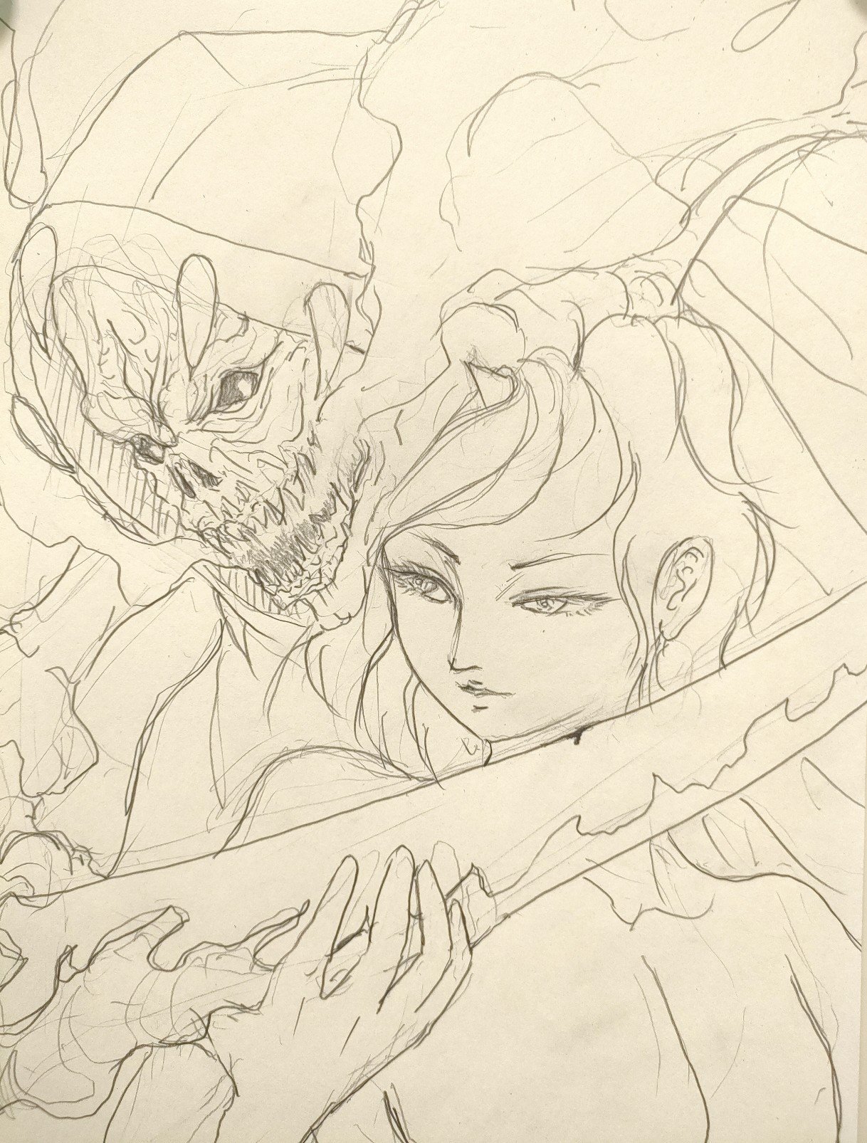 アズラエルは死を象徴する者なので、それを連想する顔つきにしましたが、この段階ではまだイメージです。