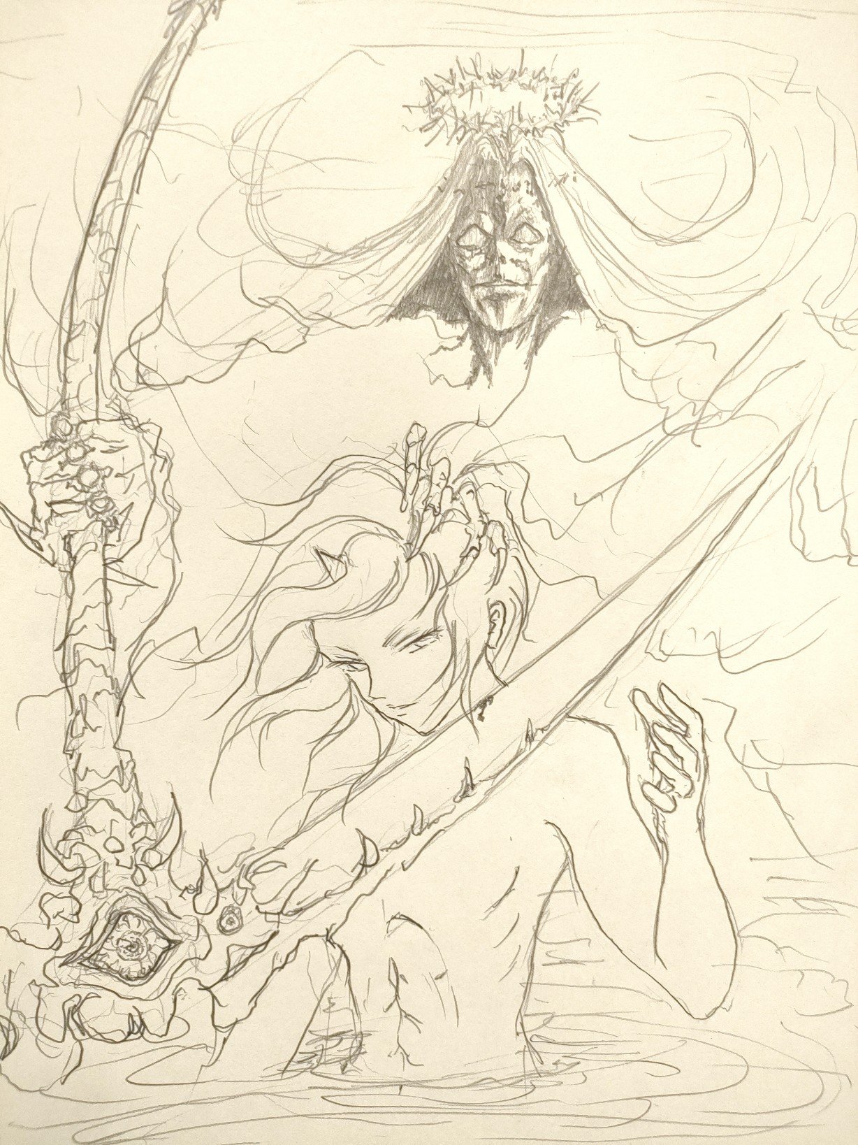ルカを修正軌道しつつ、アズラエルの可能性を引き出してみたのですが、眠気眼で描くものではありませんね。色々と欠陥があるみたいです。