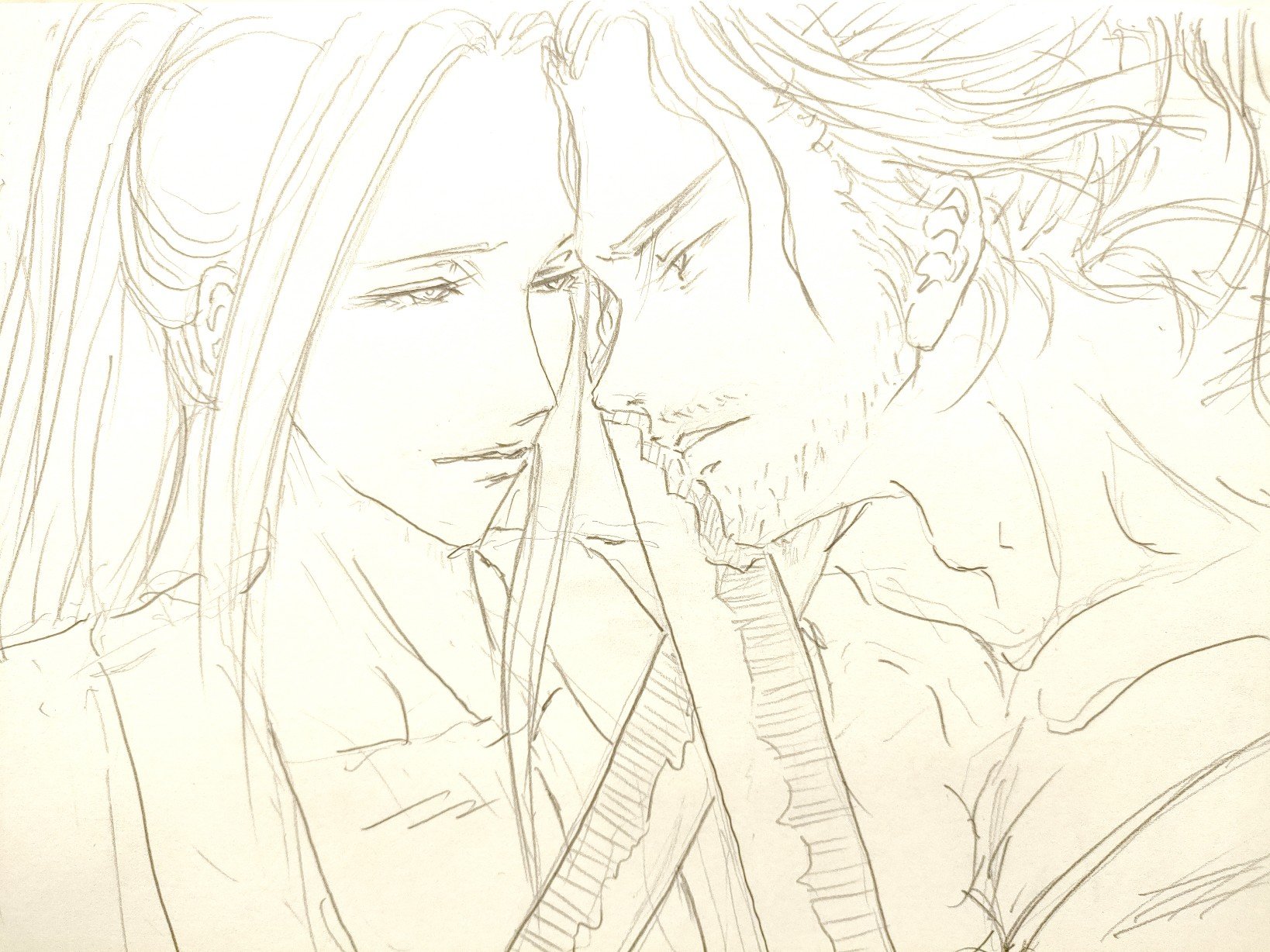 儚そうな美青年小次郎とワイルドなイケメン宮本武蔵、両方ともかっこ良過ぎます!BLになりそうな絵面です🤩