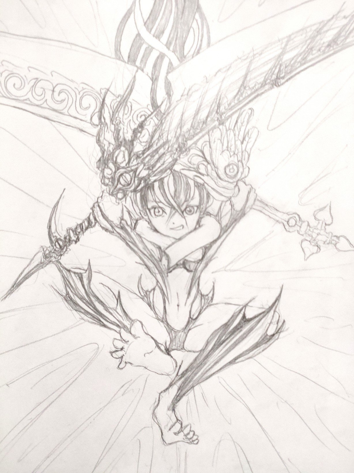 ある天使のお話の勇者が携えている剣がついに擬人化?したので、ちょっと瞬発的に描いてしまいました。いや、もっと動かしたいし、本当は肌も黒くしたい!!