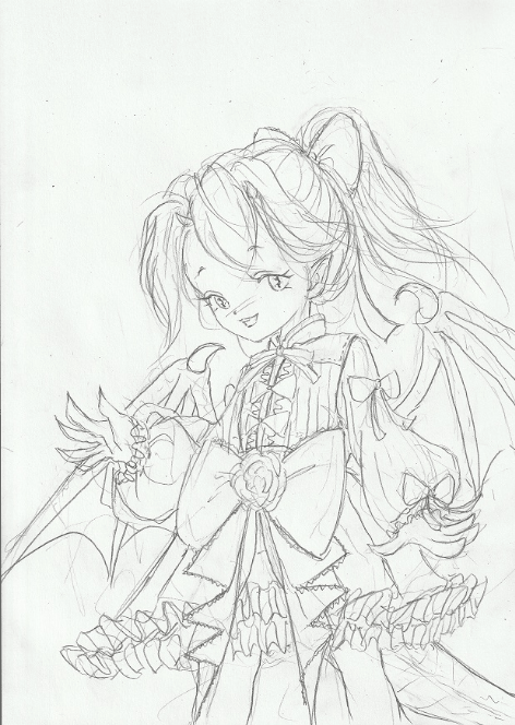 シーラ、ポニテ、小さな二つのツノ、その他については書かれていませんでした?が、イメージ的にシッポとハネは付けてみました。