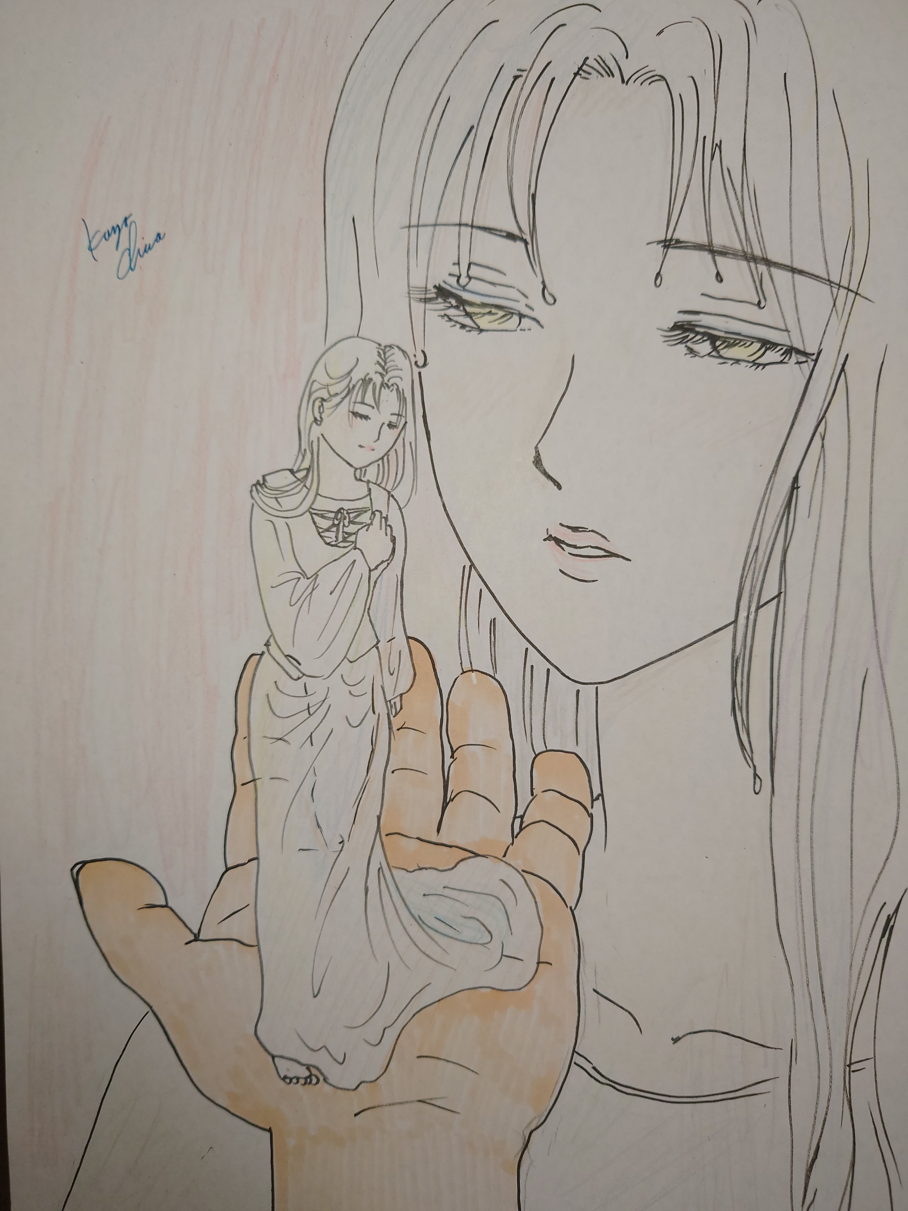 手を見て下さい。完全にしっかりとしたがたいを思わせる、節の太い男性の手。しかも親指の先に見える爪とか、細部までしっかりと描いております。