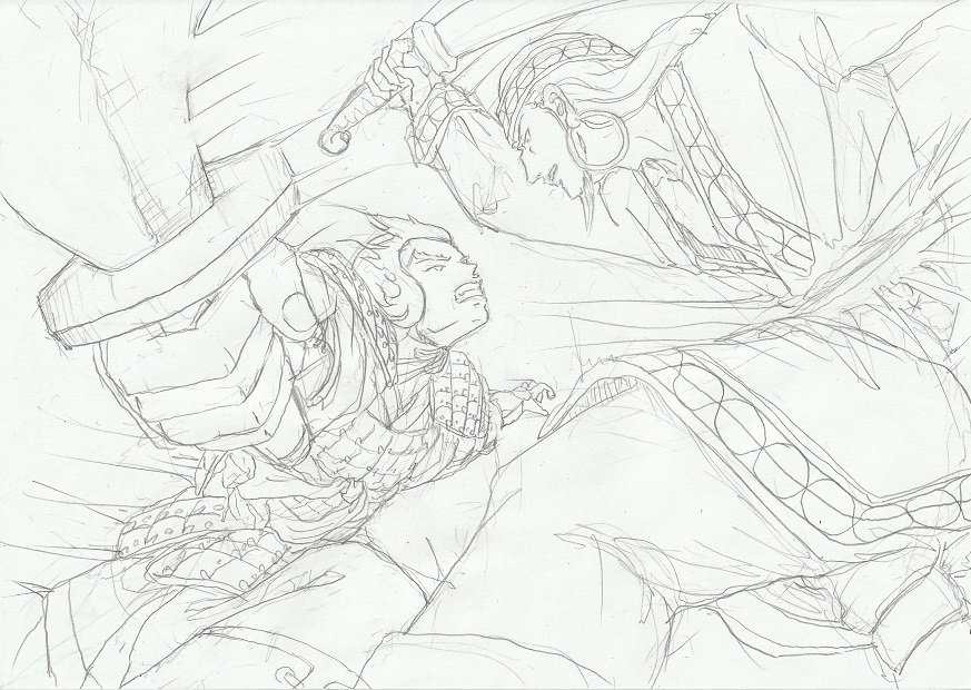 おそらくこのシーンが一番描いて欲しいシーンだと思い、あれこれ考えながら描いておりました。考え過ぎたかも知れません。(笑)