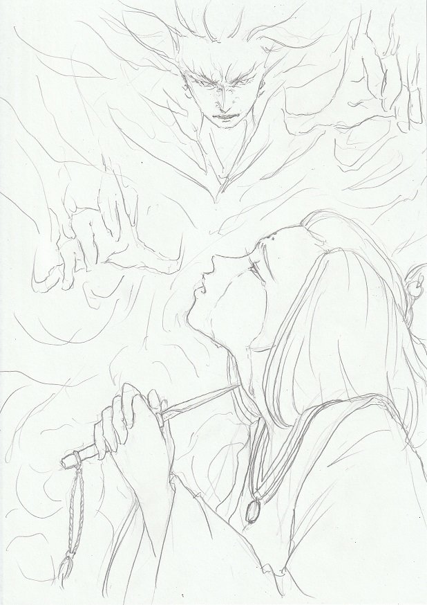 いつものように、ふんふふ〜んと鼻歌まじりで落描きしていたのは久しぶりにヨム事ができた加須テンテーの作品でつ。
