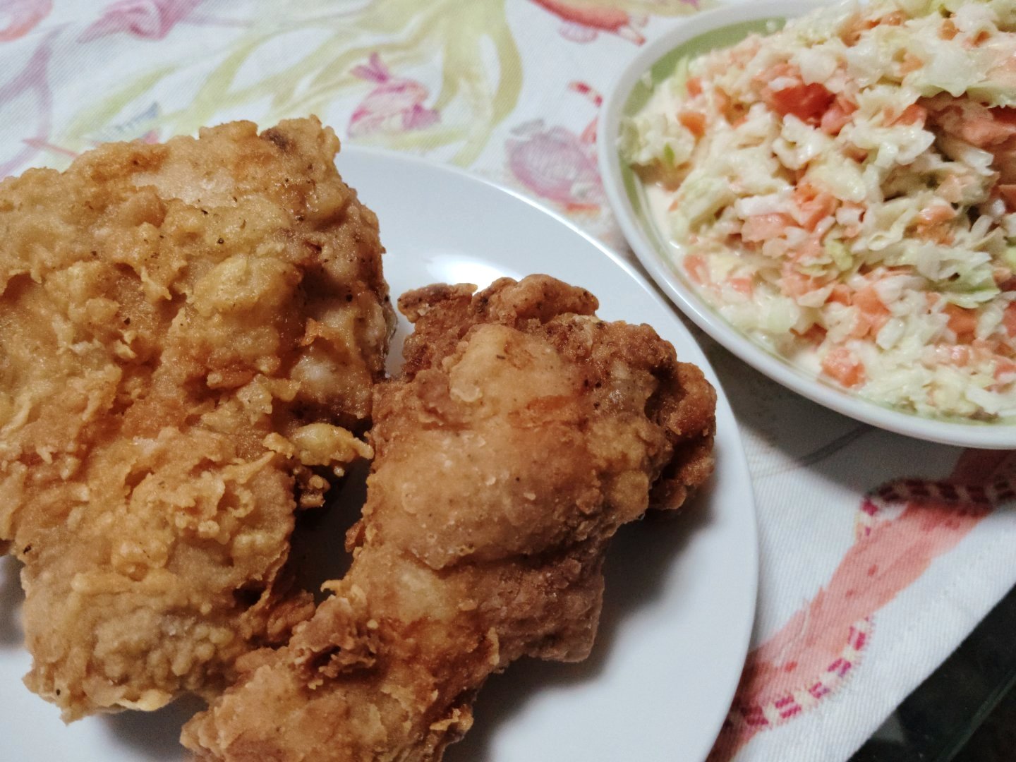 あ、捕捉ですが、あのフライドチキンのレシピ、オールスパイスか、マキシマムを少量入れた方がより近く、美味しかったです。(オールスパイス、マキシマムなしでもう一度作ってみたら、そう思いました)