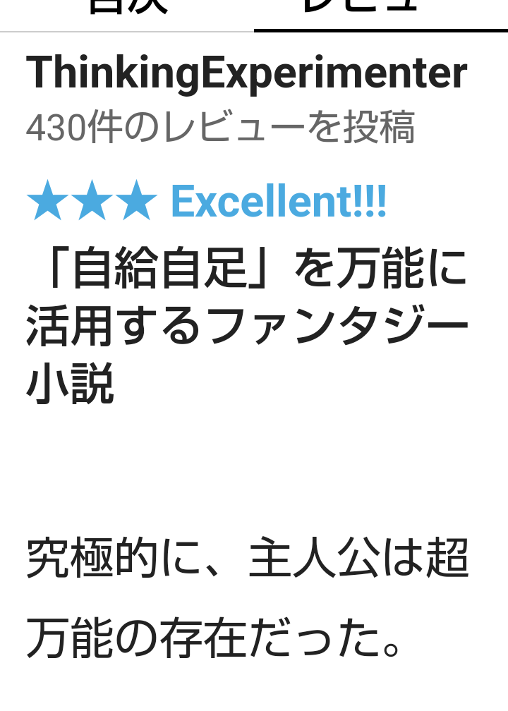 「加護が【自給自足】で追放された僕は自由に生きる」にレビューコメント頂きました