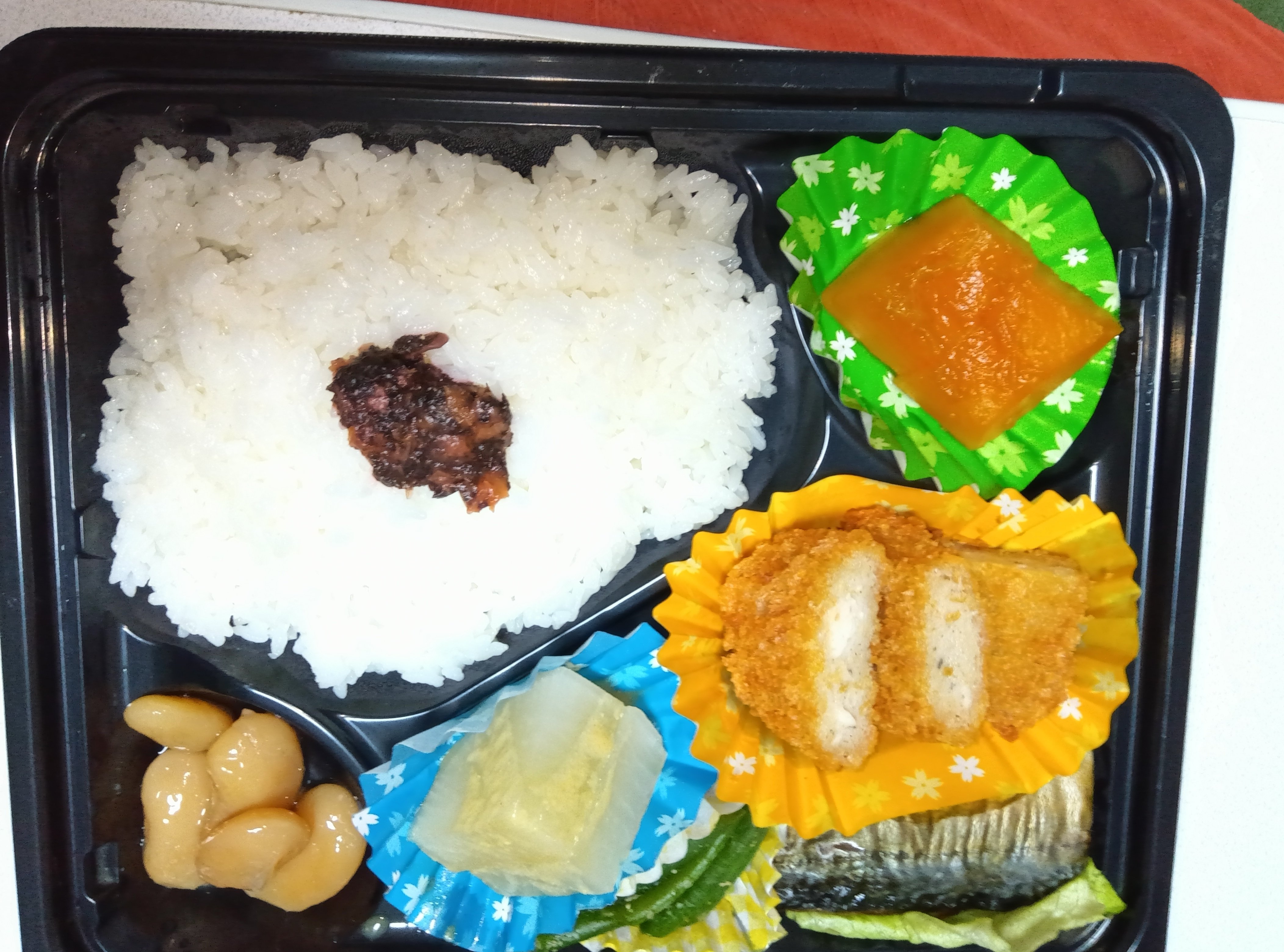 左上 白ご飯梅干し乗せ、右上 かぼちゃ煮