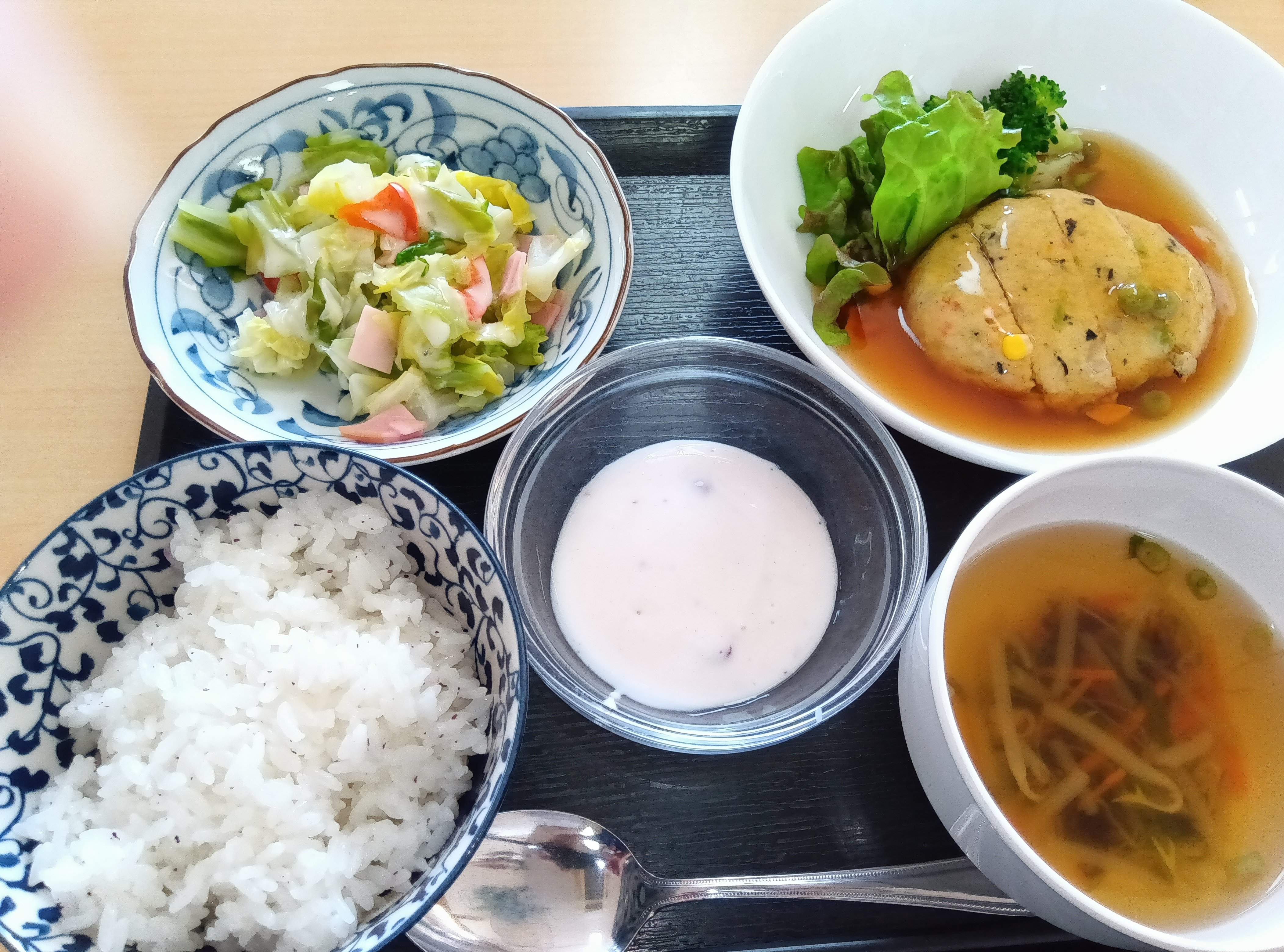 左上 温野菜サラダ、右上 豆腐ハンバーグ