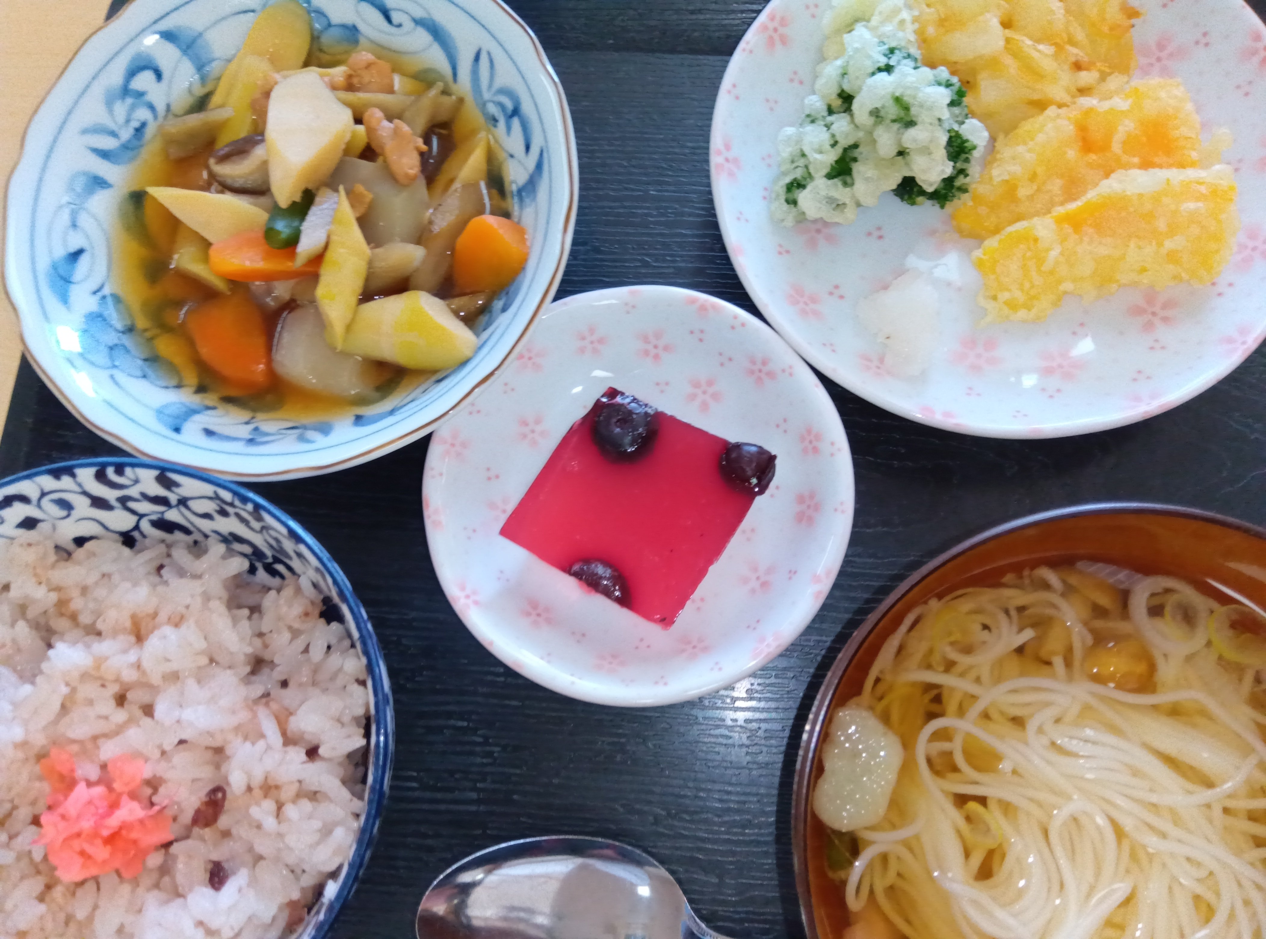 左下 小豆ご飯、右下 そうめん汁
