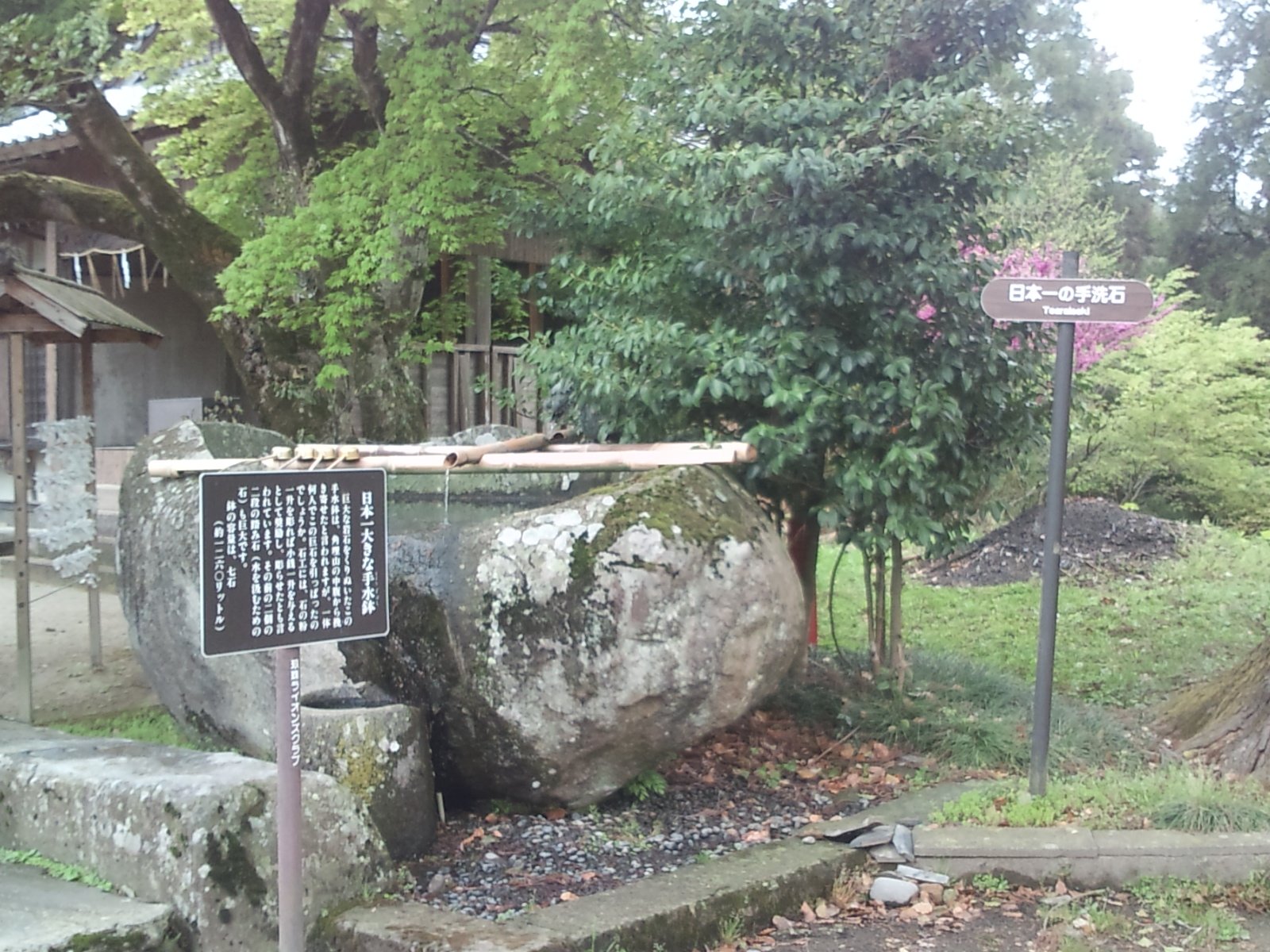 さて、今日のちょっと昔の写真ですが、きょうも2011年5月に写した三島神社の様子です。なんでも日本一大きい手洗い石だそうです