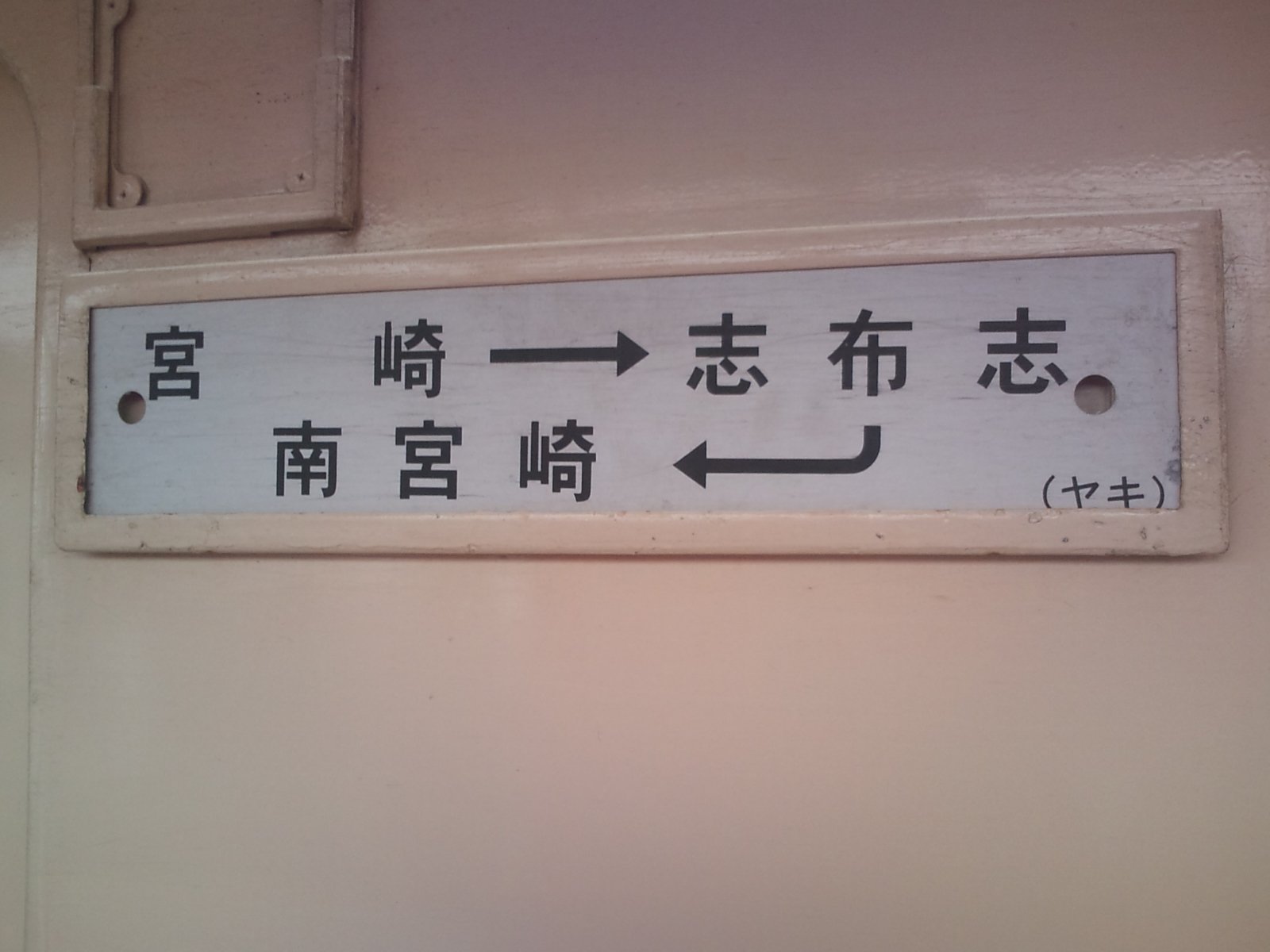 さて、今回のちょっと昔の写真ですが、今日は南宮崎駅で写した、日南線のキハ47のサボです。今はこの行先表示は珍しくなりましたが、今も日南線では使われているんでしょうか。昔は山口線でも普通に見られましたけどね。今はLED表示に切り替わっています