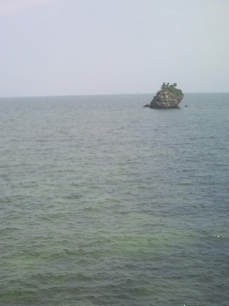 さて、今日のちょっと昔の写真。今日は、夏真っ盛りの氷見線の車窓から眺めた、雨晴海岸の風景です。源義経が、奥州に逃れる際に、この地で雨に降られて、雨がやんで腫れるのを待ったとされる場所で、ここから富山湾越しに見える立山連峰の雄大な眺めは有名ですよね。