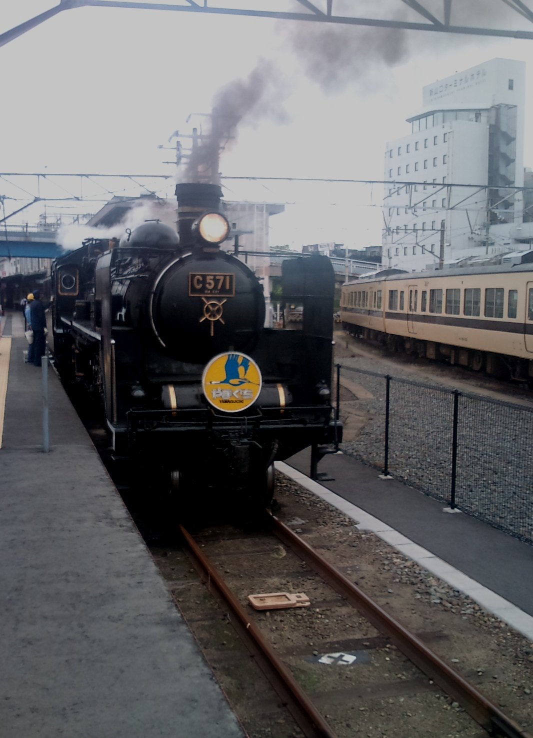 さて、今日のちょっと昔の写真。今日は、昔新山口駅に存在していた、0番線ホームに停車中のSLやまぐち号牽引のC57-1です。今は本務機はD51に譲っていますが、また先頭に立って、峠道を行く雄姿が見られるかなぁ。ちなみに今は0番線は埋められていて、かつてそこに乗降ホームがあったというのは、ホームのモニュメントに往時をしのぶことが出来ます。また、新山口駅の北口には、FM山口のゼロスタがオープンしていますよ