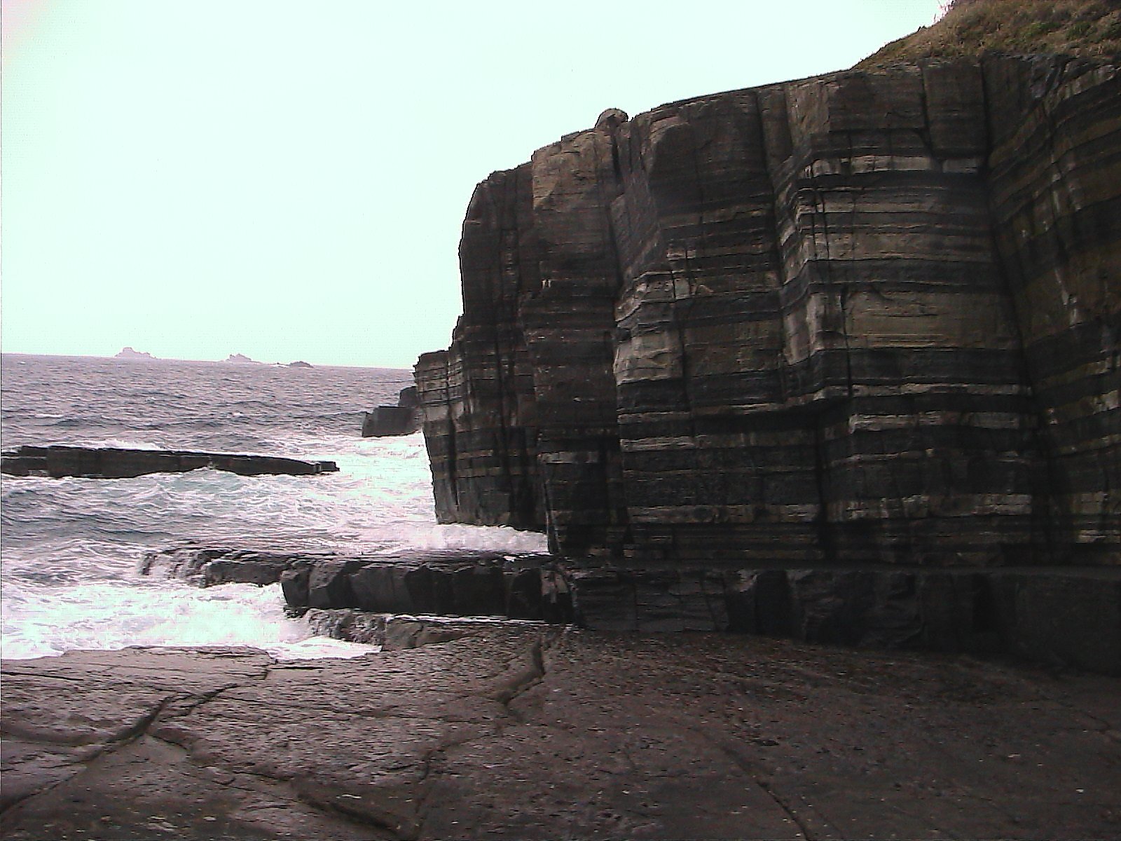 さて、今日のちょっと昔の写真ですが、今日はホルンフェルス大断層のアップの写真です。がけ下に降りることが出来るようになっているので、降りて写した写真です。海鳴りが瀞いてましたよ。それに波も高かったです。