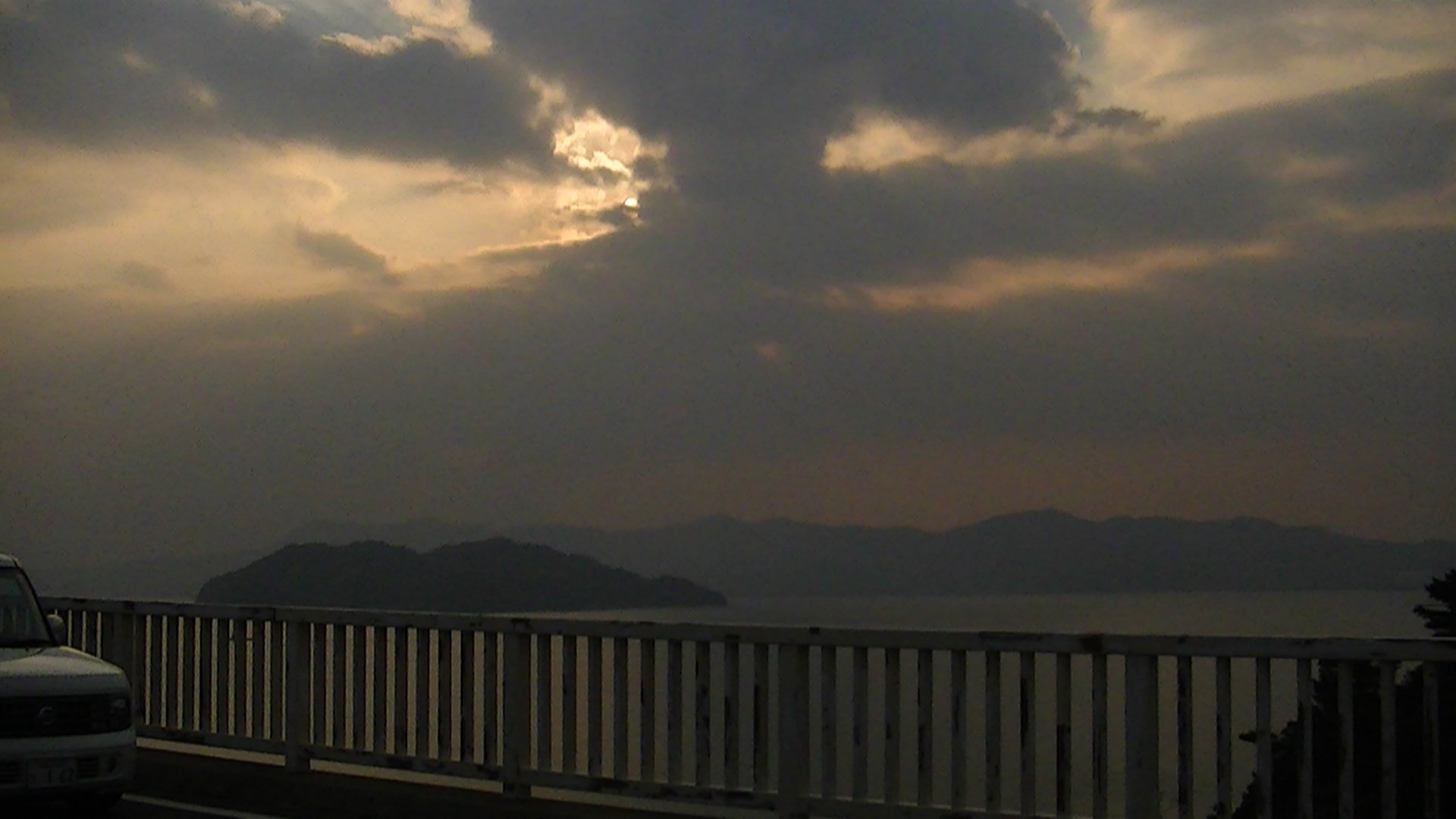 では、もう一つ、今日のちょっと昔の写真を公開しますね。2012年1月の大島大橋から写した、黄昏行く瀬戸内海を写したんですが、あいにく雲がわいてきて、きれいな悠人はならなかったのが残念です。