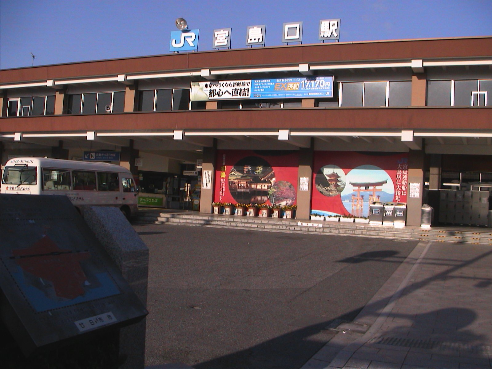 さて、今日のちょっと昔の写真ですが、朝日に照らされる、2012年1月の宮島口駅の駅舎です。ここは宮島に向かうフェリー乗り場がすぐ近くにあって、朝から多くの乗客がたくさん、フェリー乗り場に向かってました。