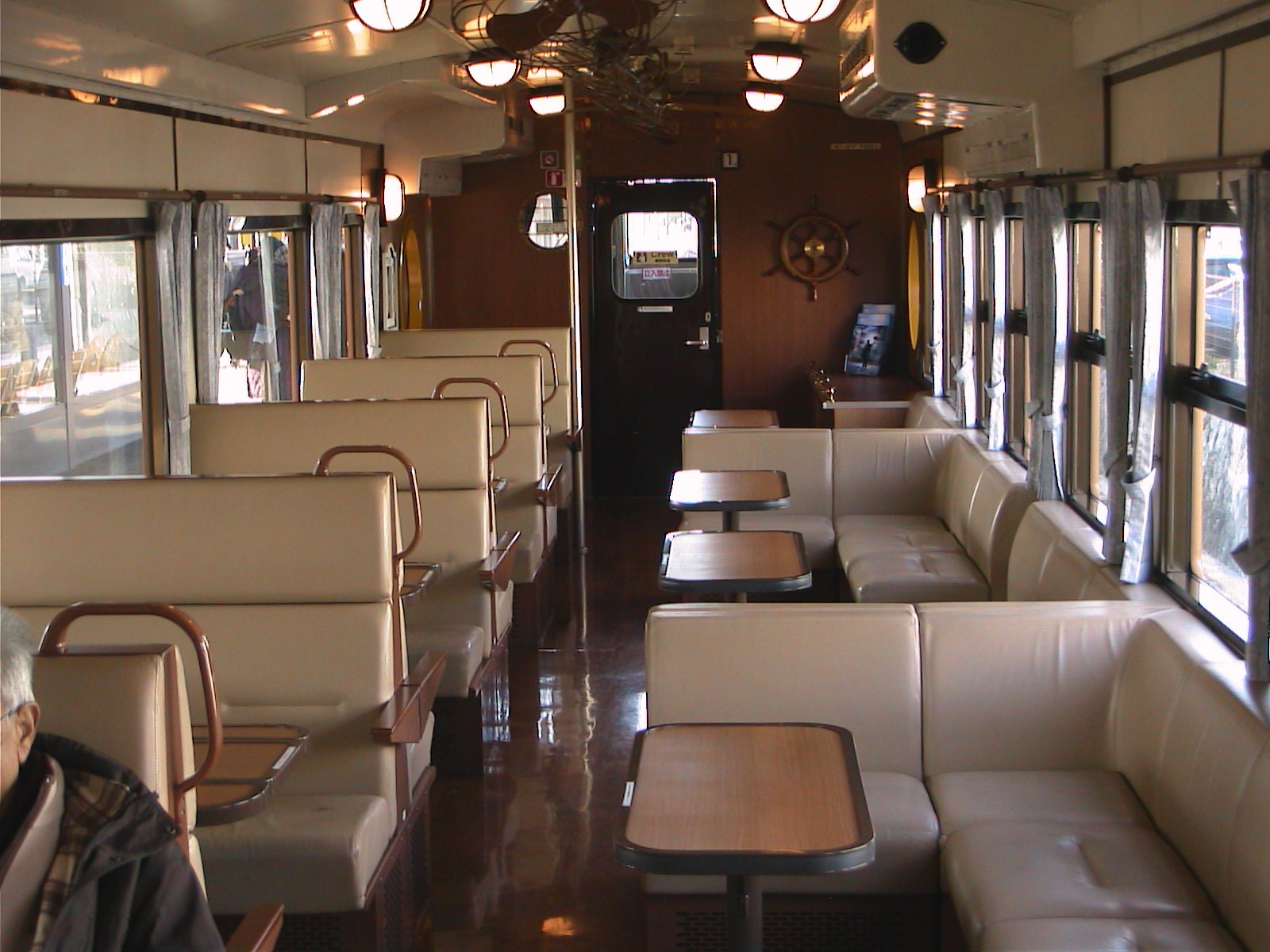 さて、今日のちょっと昔の写真ですが、瀬戸内マリンビューの車内の様子です。海側に座席が向いており、瀬戸内の美しい海の風景が堪能できるようになっています。