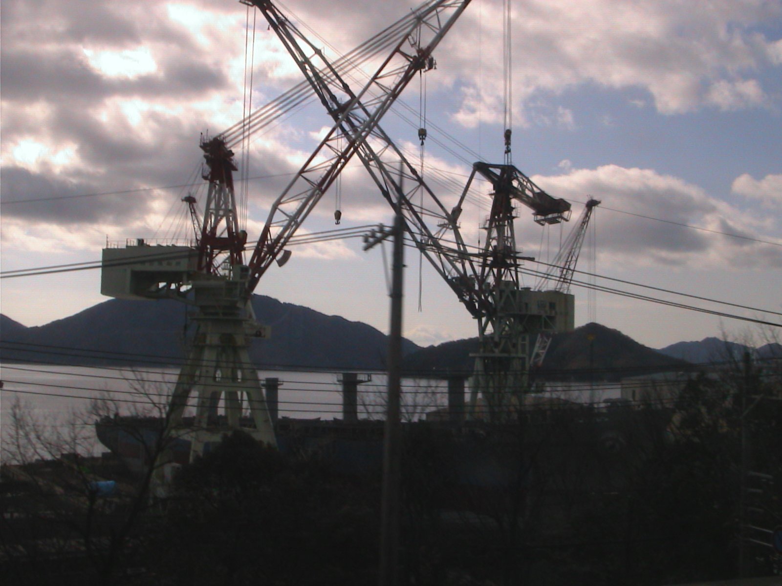 呉線の呉付近の様子です。流石に造船業が盛んなところだけあって、大掛かりな施設が垣間見えましたよ
