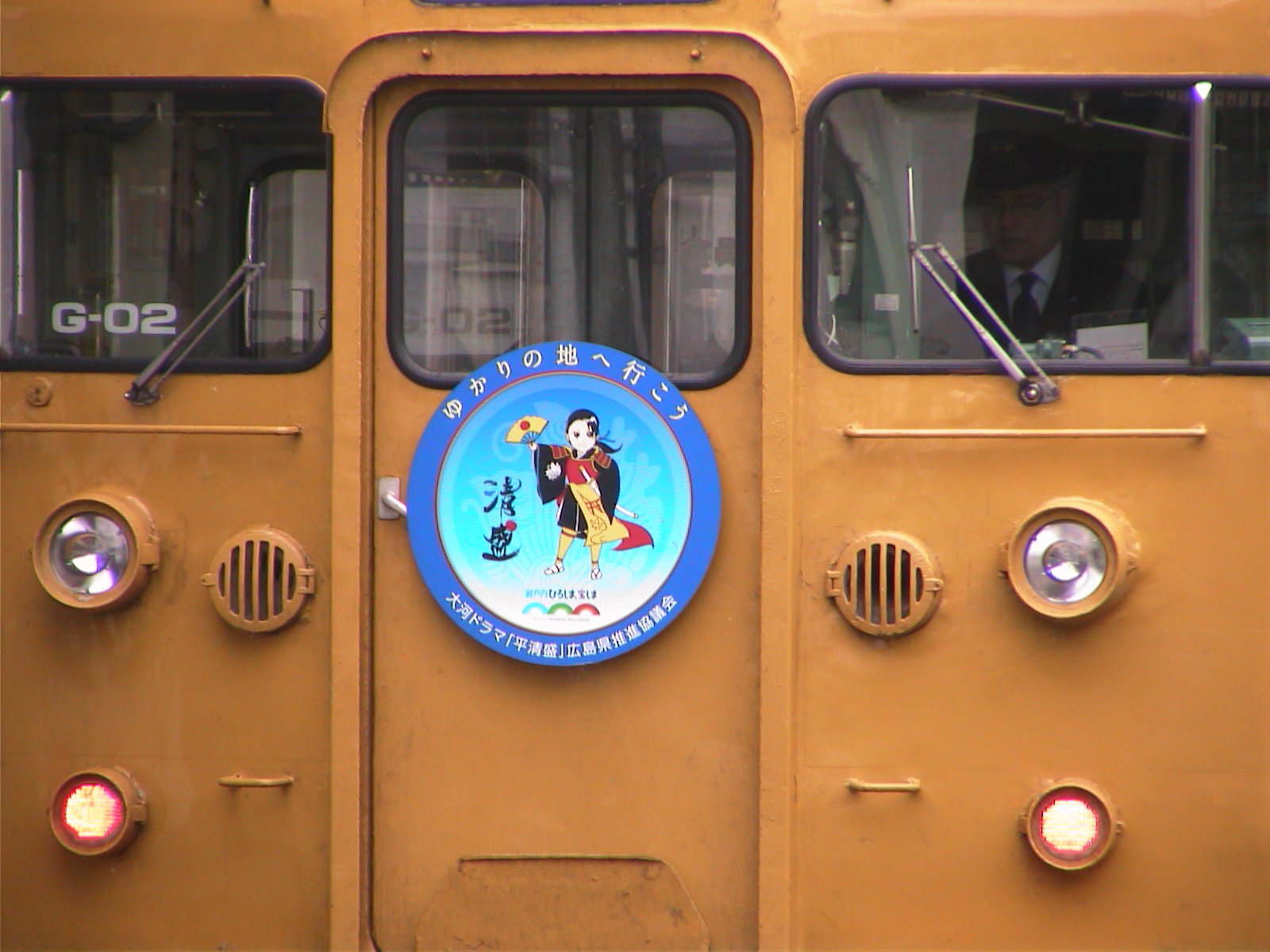 さて、今日のちょっと昔の写真ですが、今日は大河ドラマ平清盛包装記念のヘッドマークを付けた、115系G‐02編成です。三原駅で写したもので、広島支社管内を走ってました。