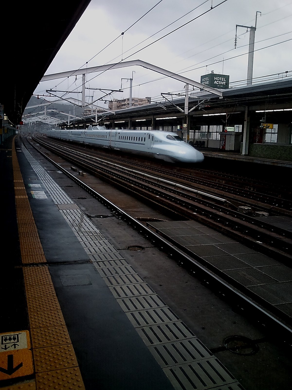 そして、今日のちょっと昔の写真。今日は2012年4月の雨の日の新山口に停車するN700Sさくらです。もうこの車両も登場して13年。早いですねぇ