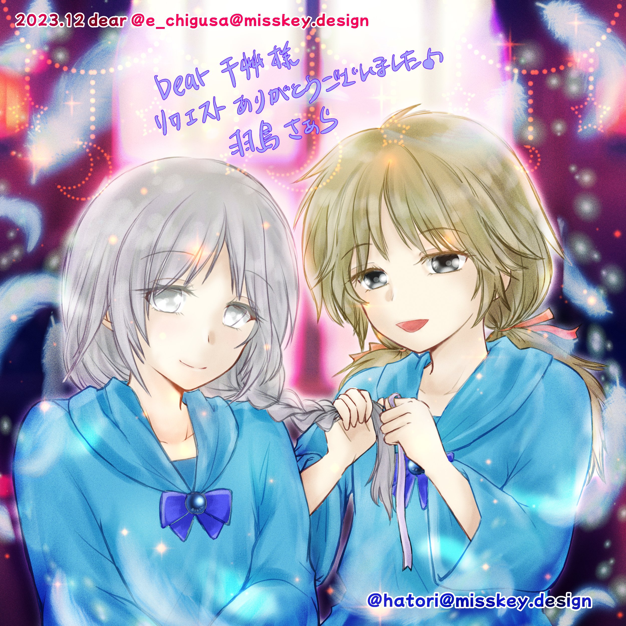 そしてついに天使が揃い踏み。カレンとウルスラの八歳児コンビを、いつもMisskey.designでお世話になっている眞城白歌さん(羽鳥さん)にスケブで描いていただきました!