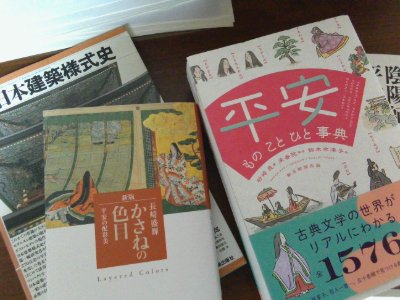 和の資料は、何かと持っているんですよね。ほら、もともと源氏物語が好きだったもので、執筆に関係なくマニアックな本を持っていたり。(写真は最近買ったものや、昔からあるものやいろいろです)