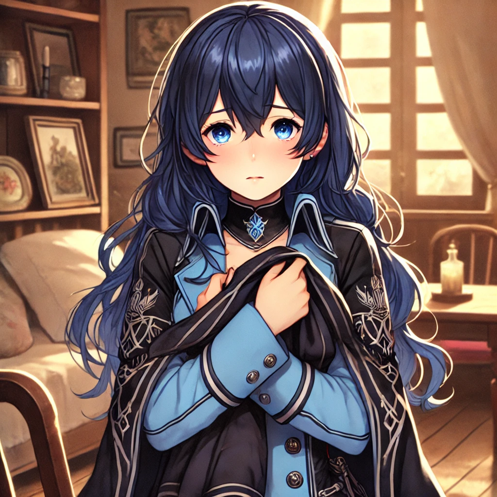 アキラのコートを抱き抱えて不安そうにしているアズールのイメージイラストです。