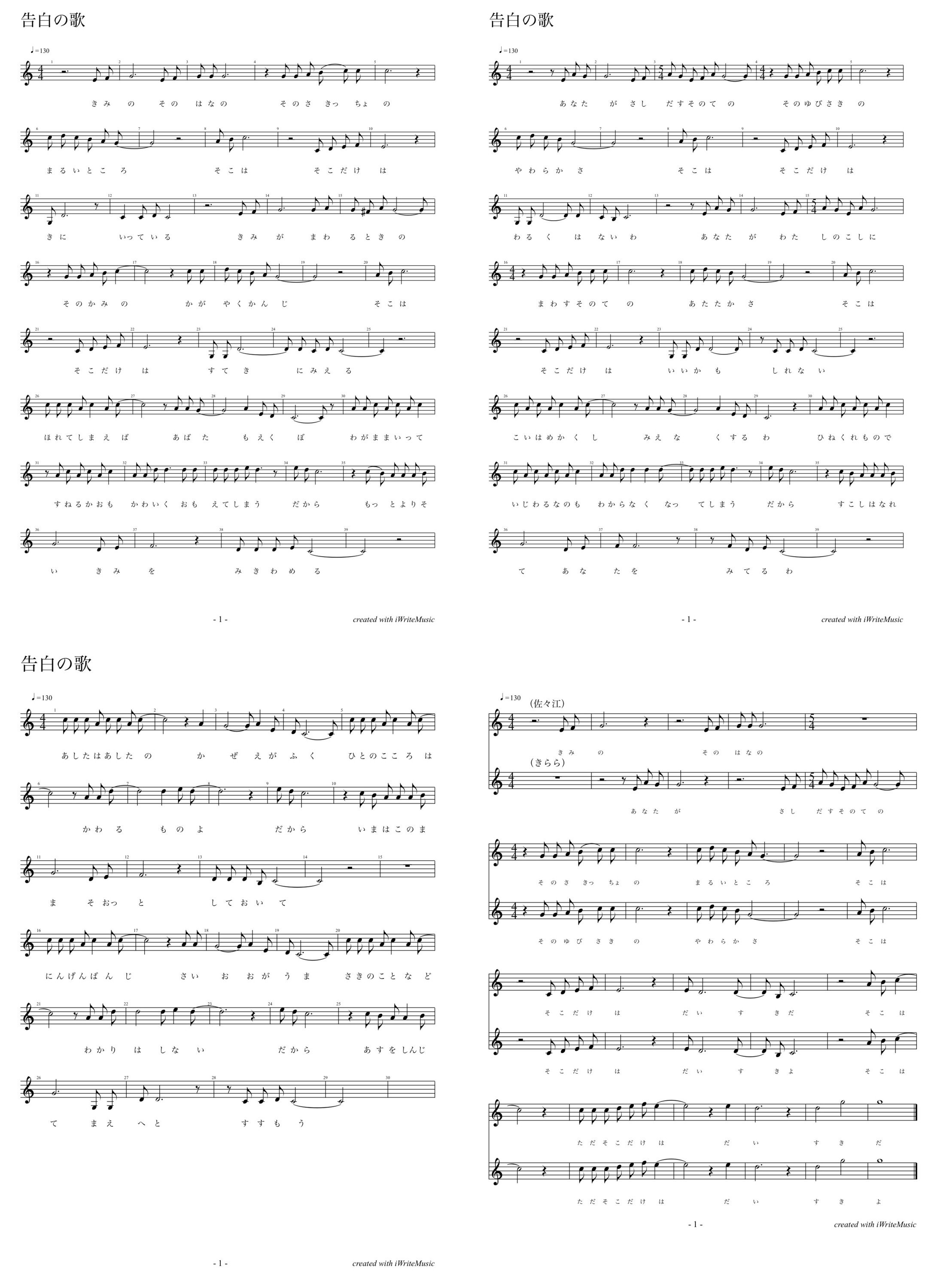 『告白の歌』楽譜