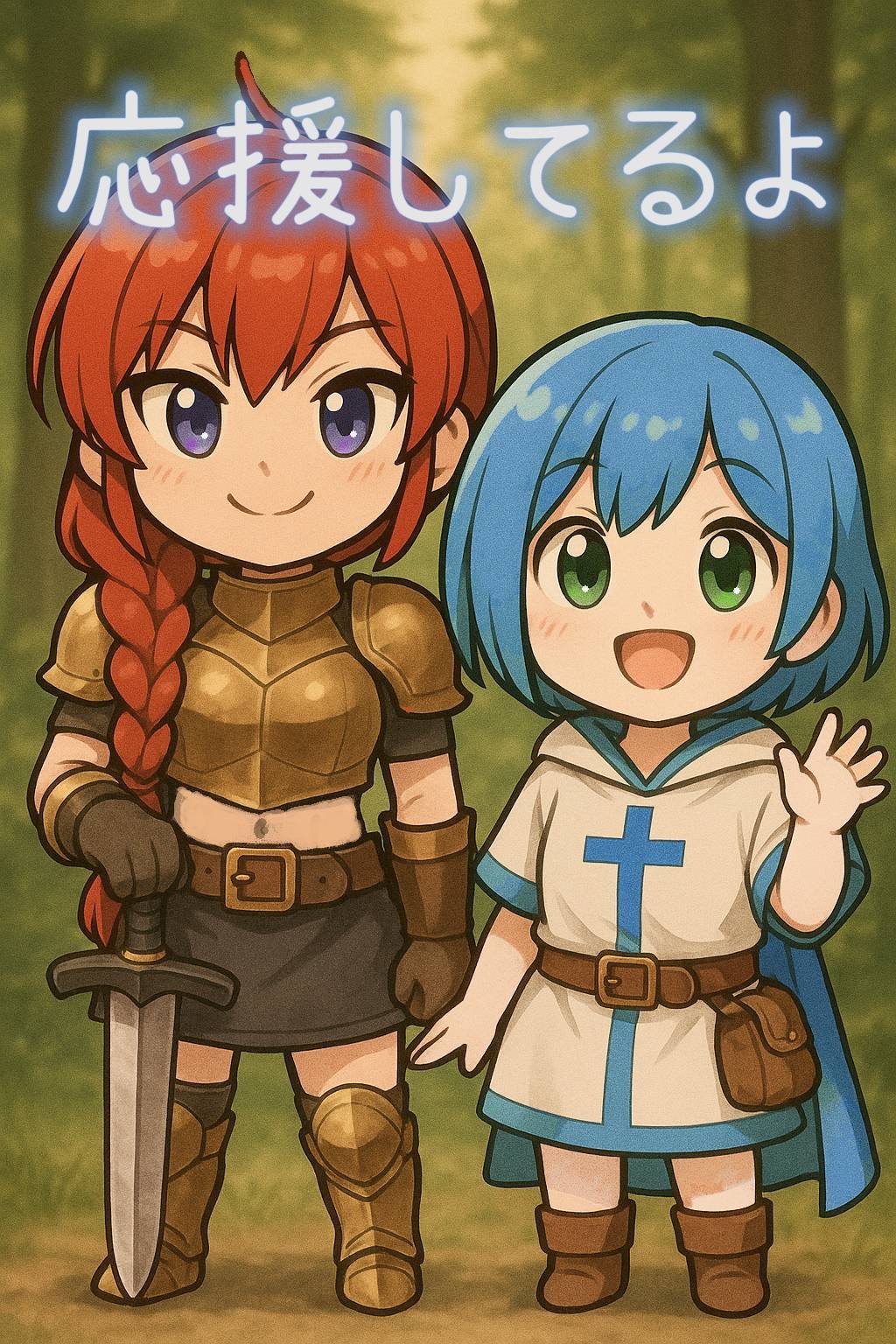 画像は、創作者仲間の、勿忘草さんに作成してもらったアシェイラとエルカです。