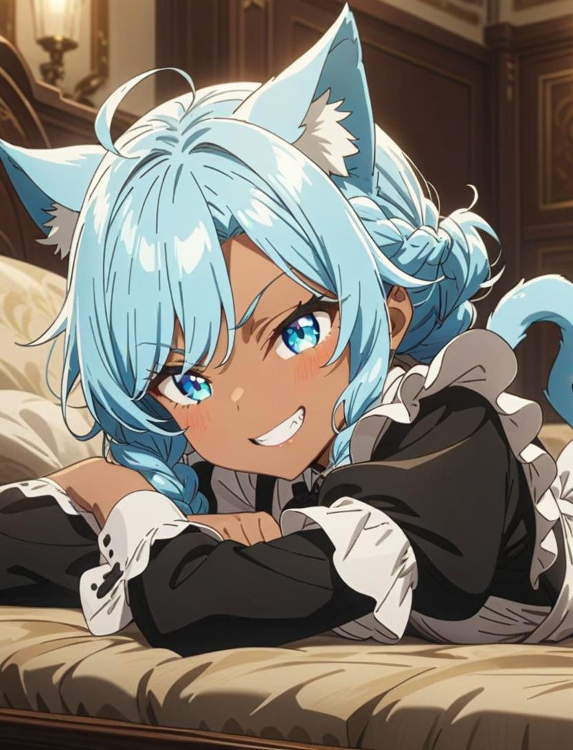 お屋敷のベッドのシーツの交換中、
