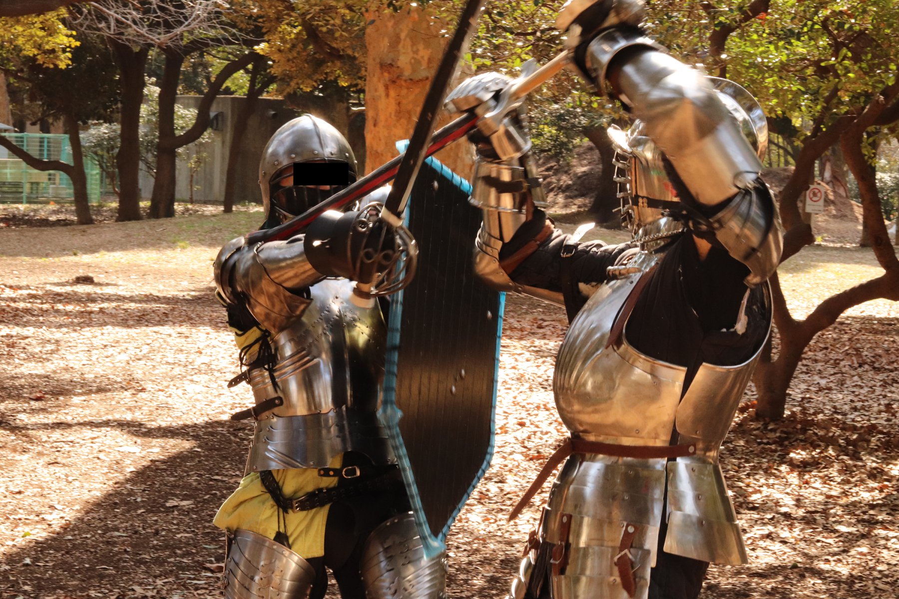 添付した画像ですが、これは筆者(右側の戦士)がハーフソードという技法を使っている場面です。