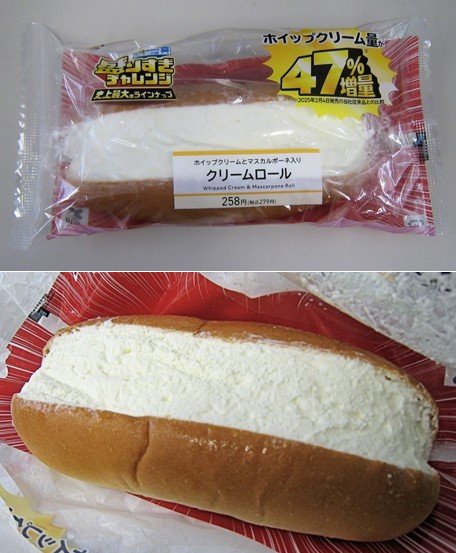 「F氏の妄想日記」2月4日で取り上げた47%増量のクリームロールを買ってみた。