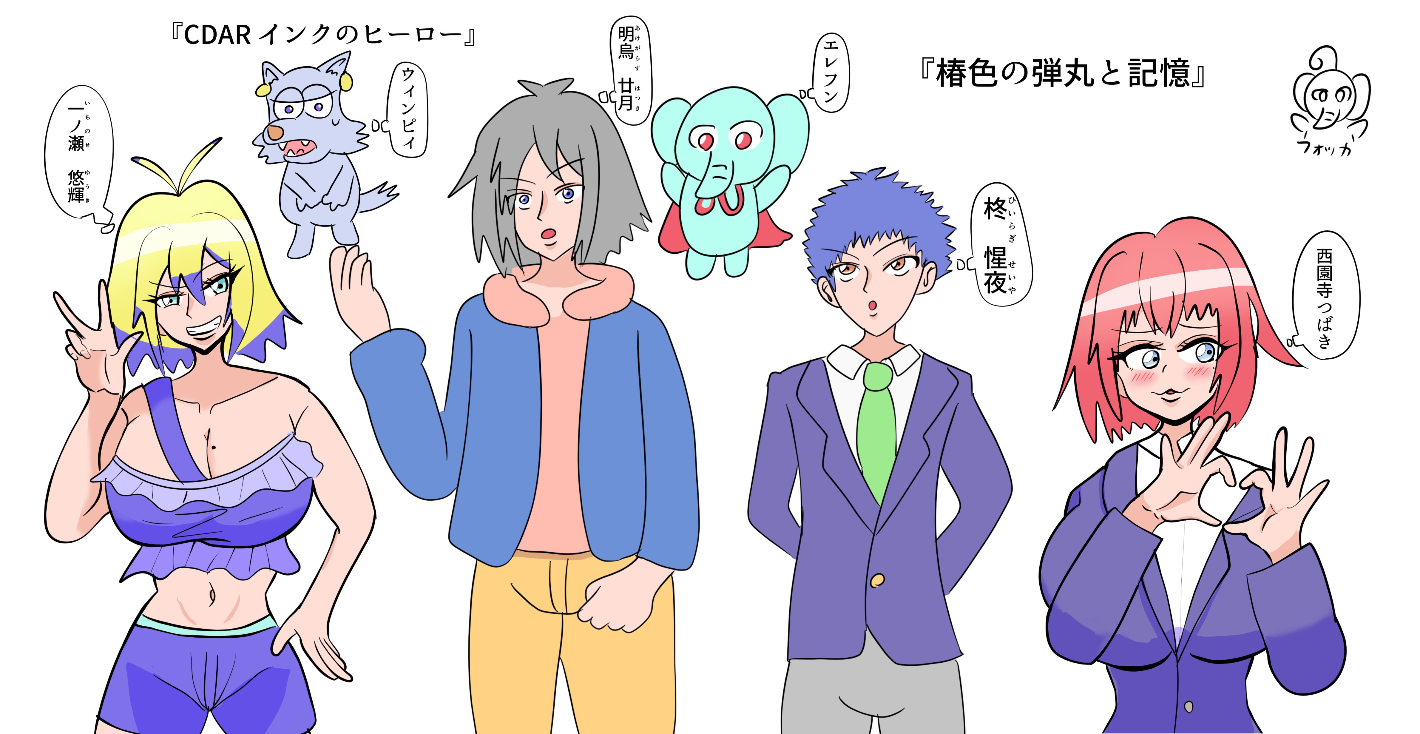 『CDARインクのヒーロー』の『明烏廿月(あけがらすはつき)』と『エレフン』、『一ノ瀬悠輝(いちのせゆうき)』と『ウィンピィ』です。